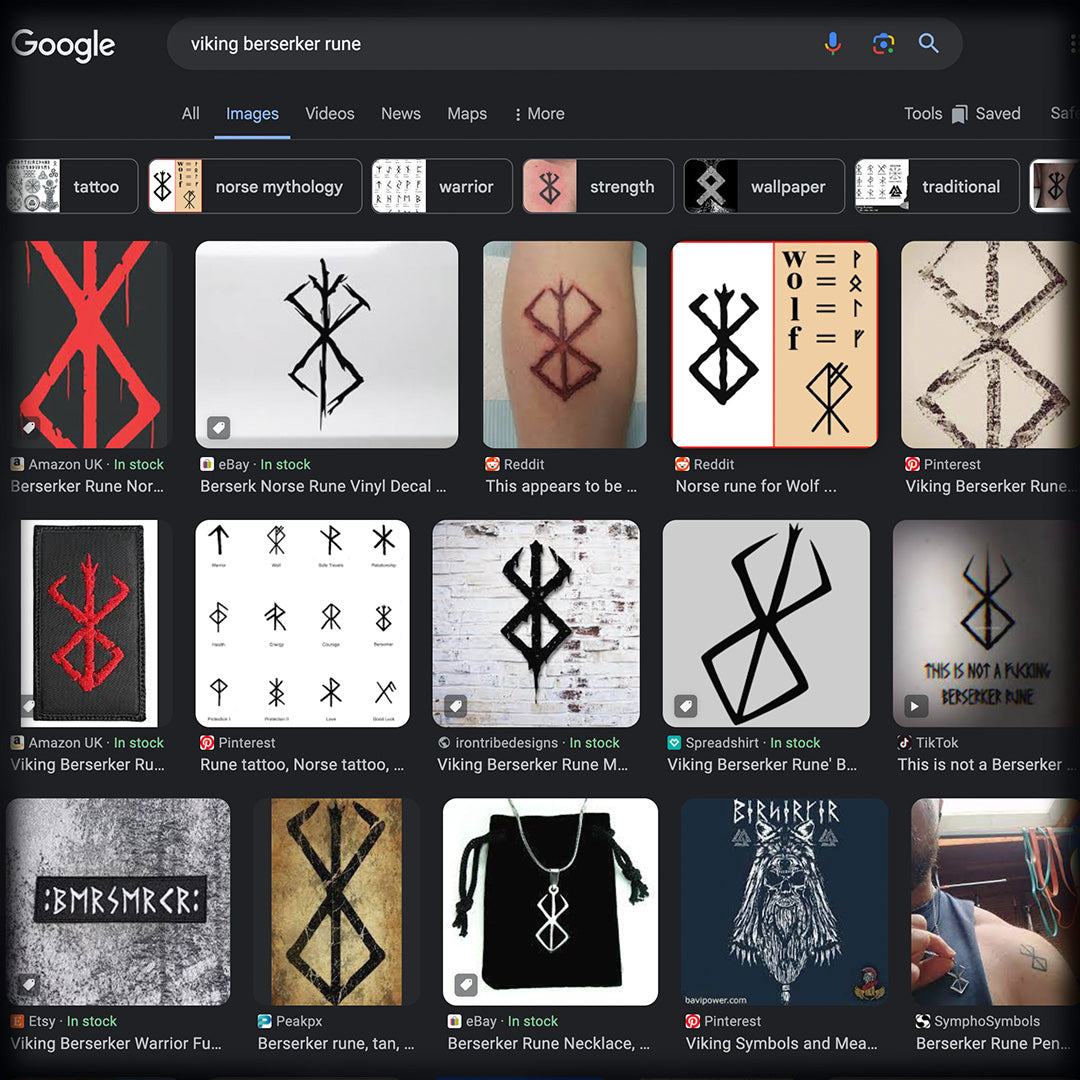 OFTEN LABELLED ONLINE AS A VIKING BERSERKR RUNE. THIS IS, OF COURSE, BULLSHIT.