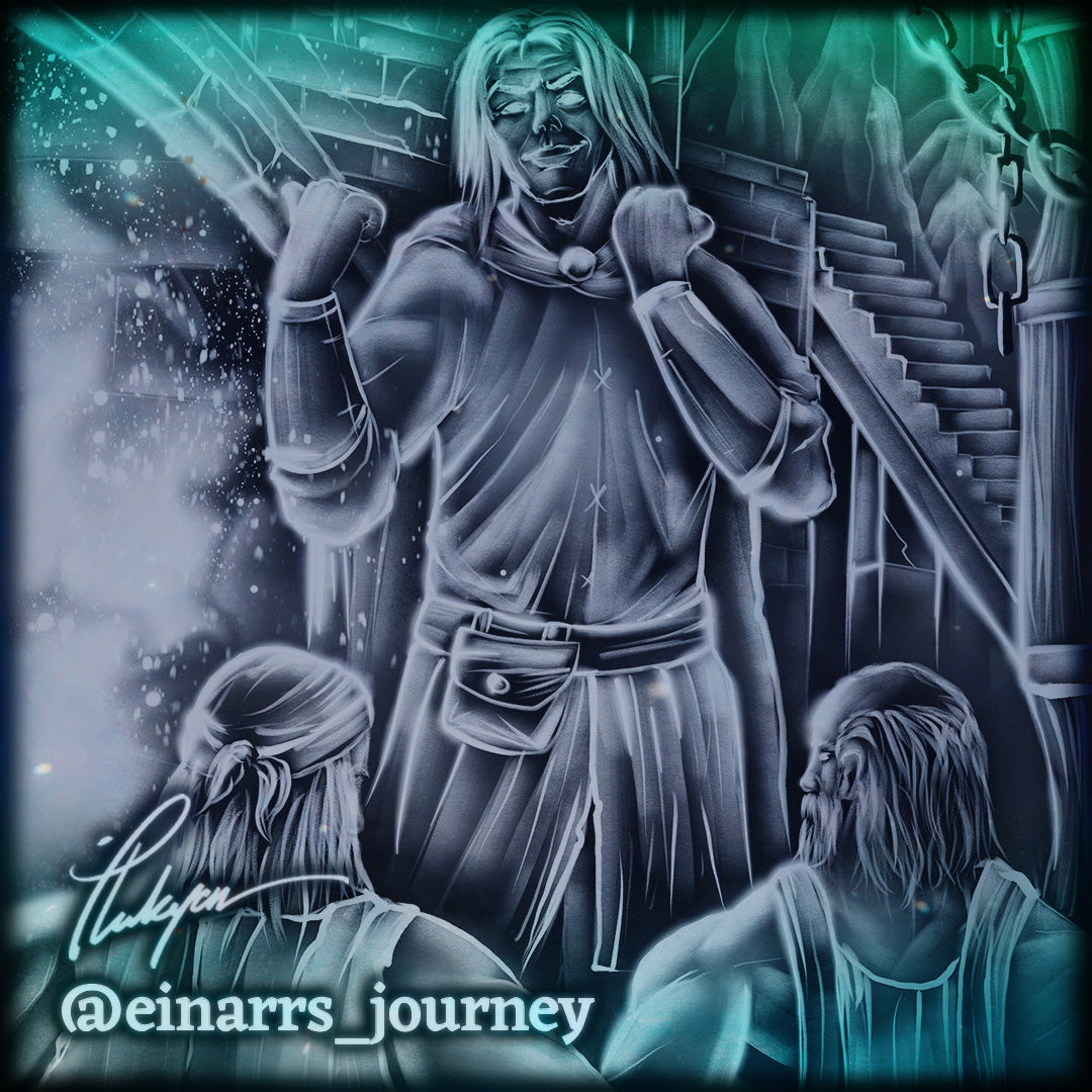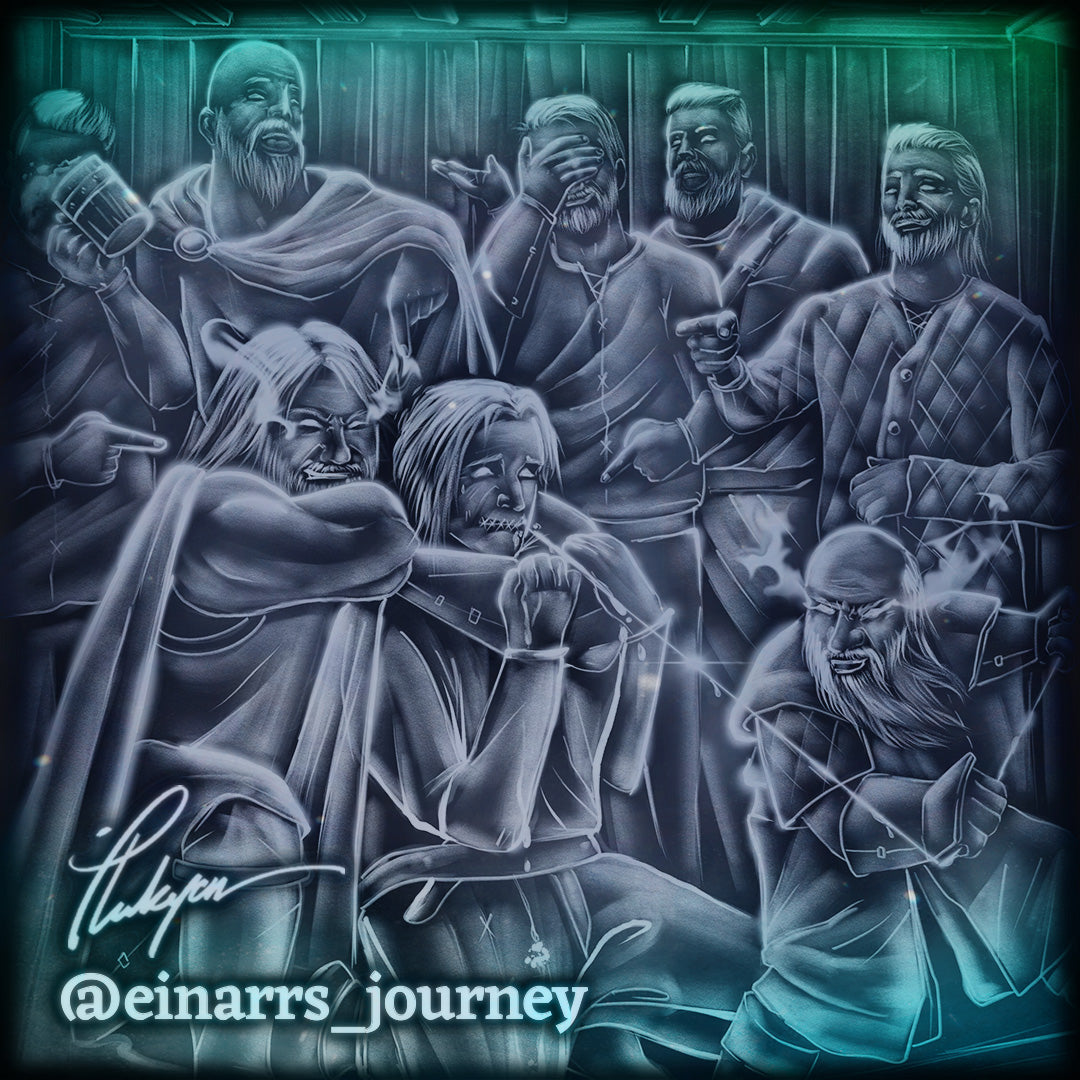 Next is Brokkr, who presents his three marvels: a golden ring that spawns 8 copies of itself every 9th night given to Odin, the golden-bristled boar to Freyr, and finally the flawed but powerful hammer to Thor. Much like the swaying spear, Mjǫllnir always hits its mark and is to be the most powerful weapon the gods possess.