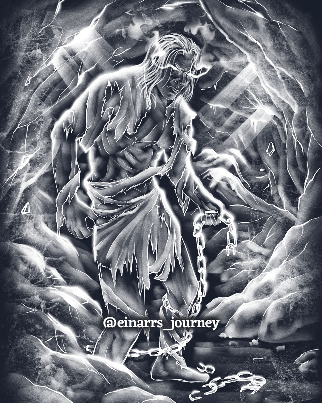 After Baldr's death, the gods decided to hold Loki responsible for his actions, while giving him no way out this time. They tracked him down and brought him to justice. Loki was bound with the entrails of his own son, Narfi, who had been transformed into a wolf by the gods. These entrails were used to create unbreakable chains that held Loki captive in a cavern beneath the earth.