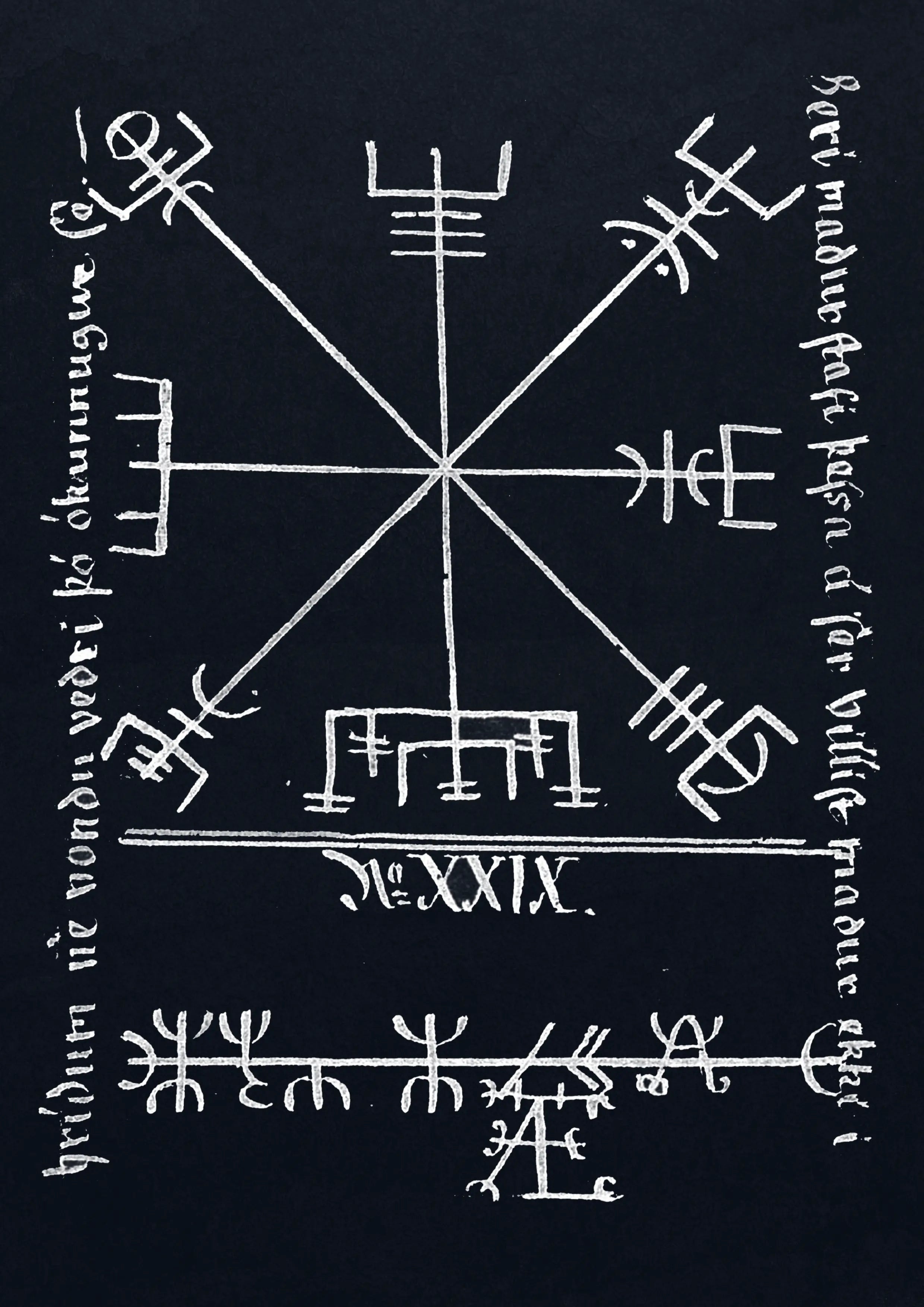 The Vegvísir is 100% not a Viking symbol and certainly not a Viking compass, it is a much younger symbol with a meaning that is often misunderstood and misinterpreted. The Sorcerers Screed is a great book on Icelandic magic - 'galdrastafir' and below is the translation from the original grimoire.