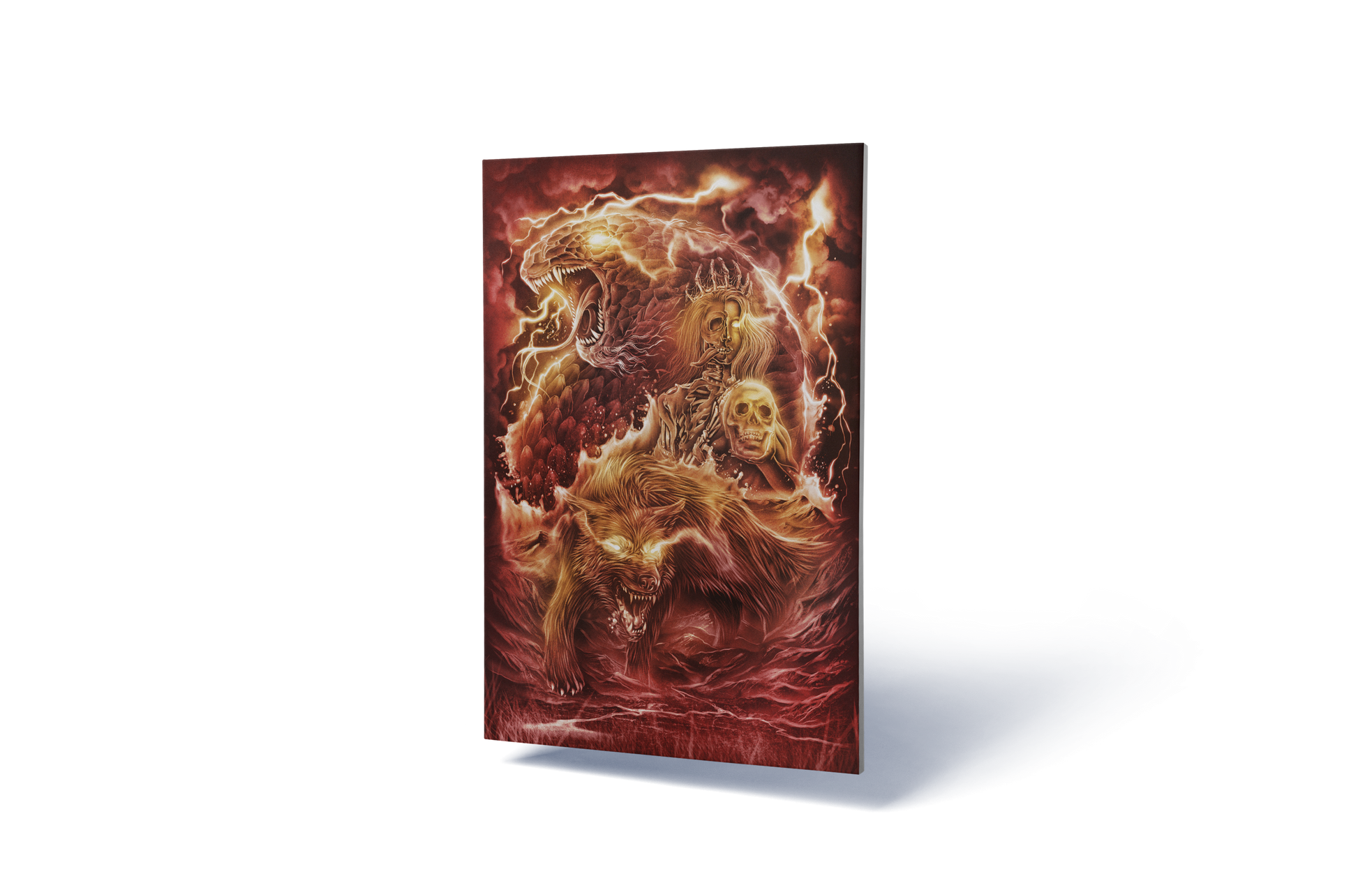 A4 print featuring the monstrous offspring of Loki. From the union of Loki and Angrboða came three of the most feared beings in Norse mythology - Fenrir, Jörmungandr, and Hel.