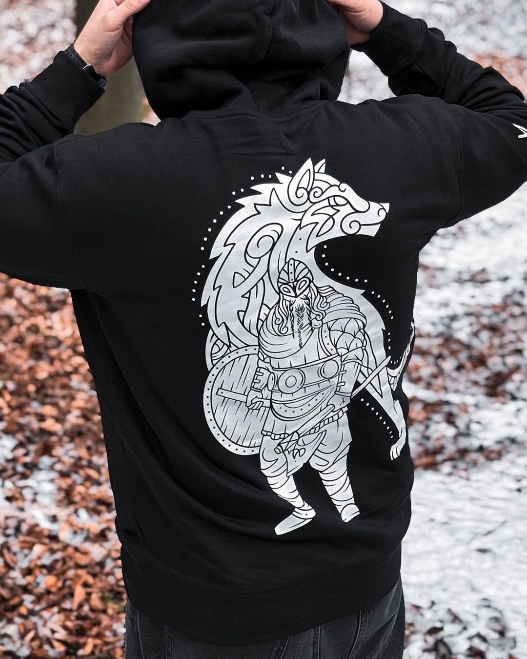 The artwork portrays a Vikingr standing resolute, ready for battle, with the unwavering protection of a loyal wolf by his side. Together, they symbolise the primal instincts of a father—fearless, steadfast, and bound by loyalty. The intricate Norse details and raw, untamed energy make this piece a tribute to every father who stands as a shield for his family.
