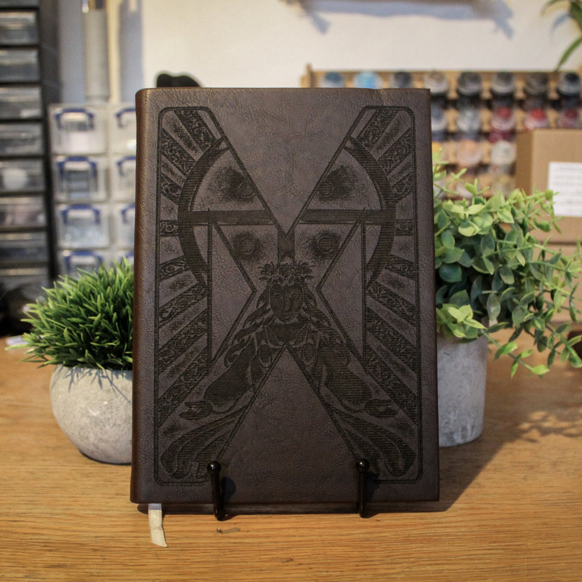 Leather Notebooks with lined pages and engraved runes.