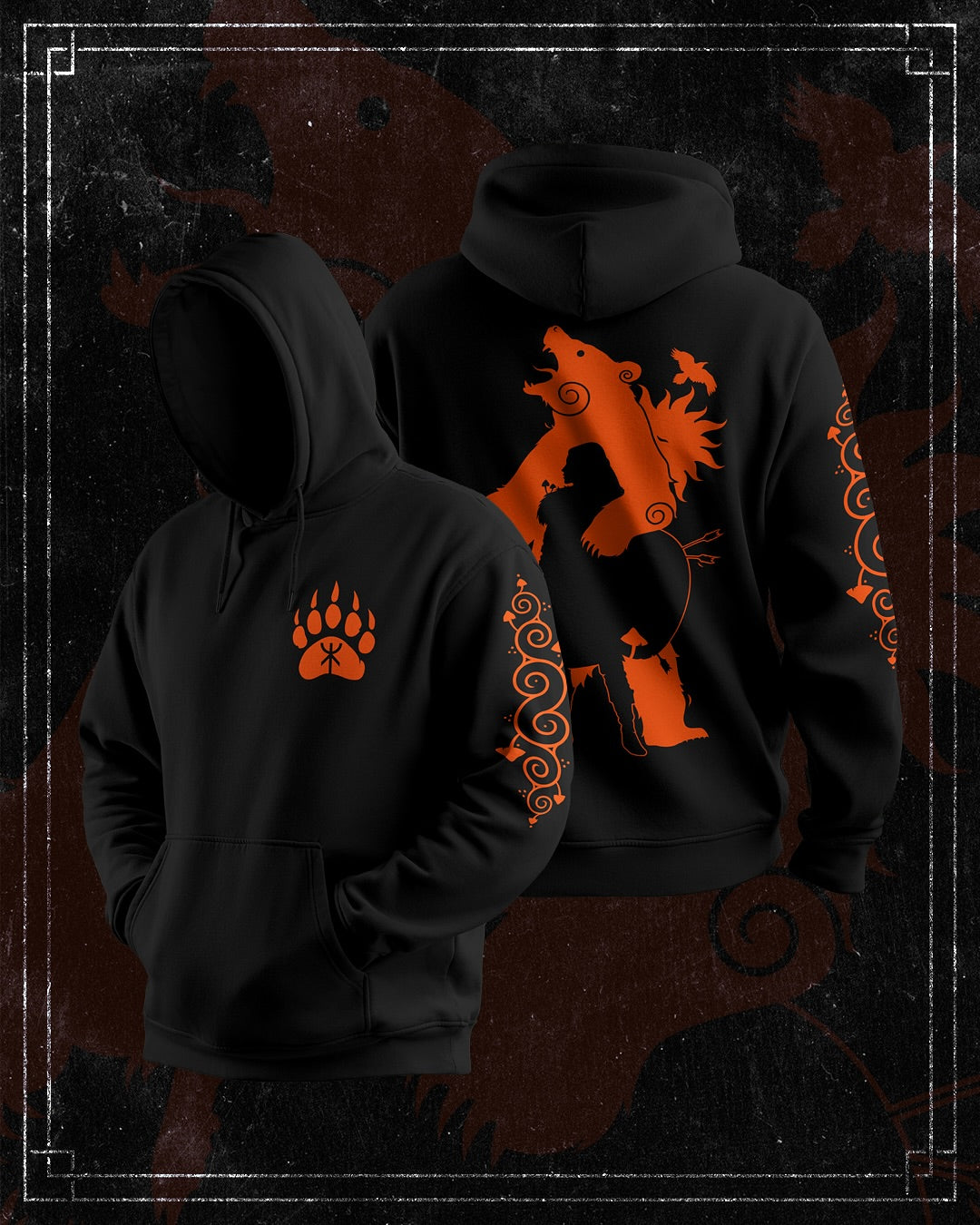 Our Berserker Hoodie features bold, hand-pressed designs that capture the essence of these legendary warriors. All designed by Midgard Dweller; The intricate, custom print reflects the raw, untamed spirit of the Norse era, showcasing symbols of strength, honour, and the relentless pursuit of victory. Each hoodie is individually hand pressed, ensuring a unique, high-quality finish that stands out.
