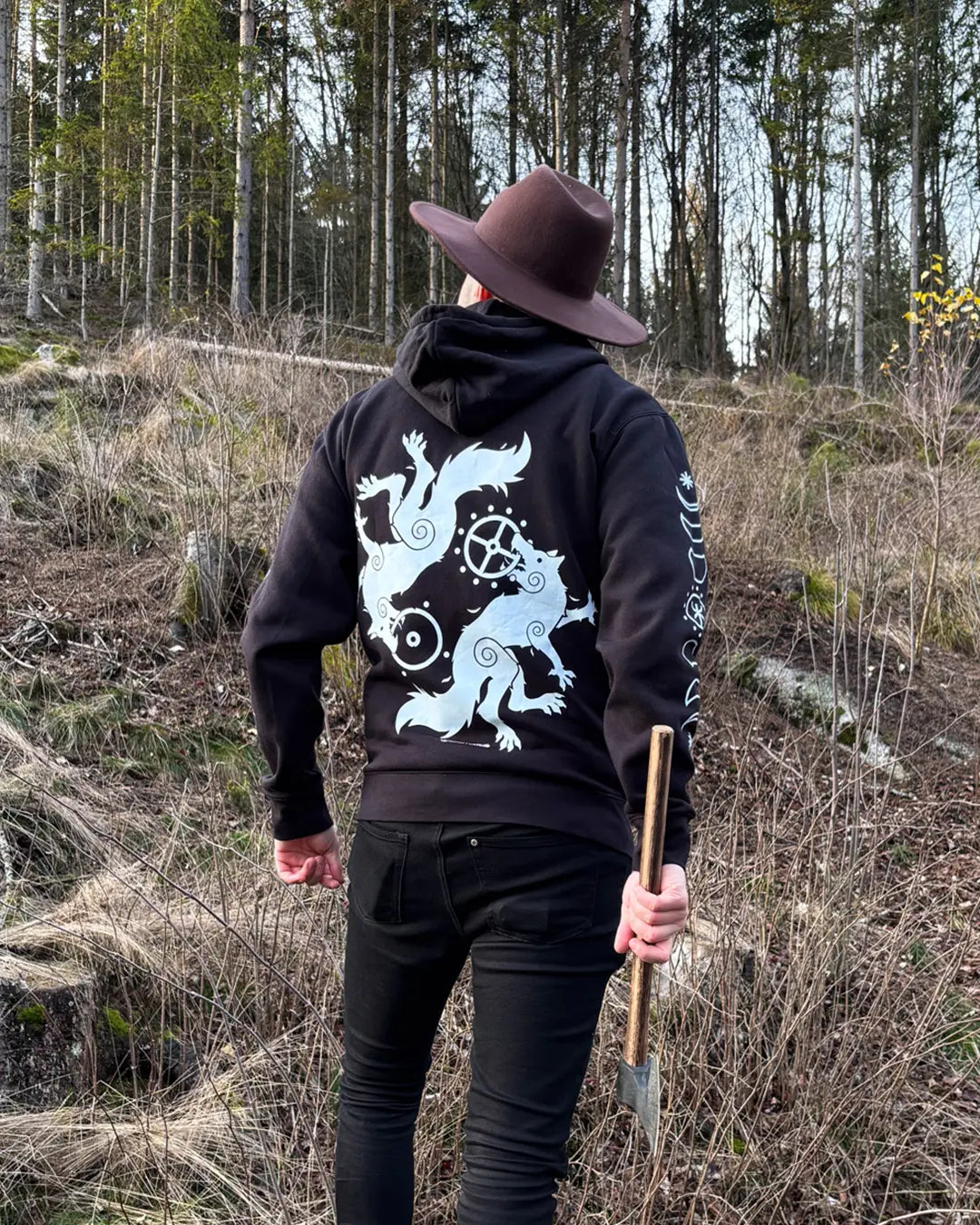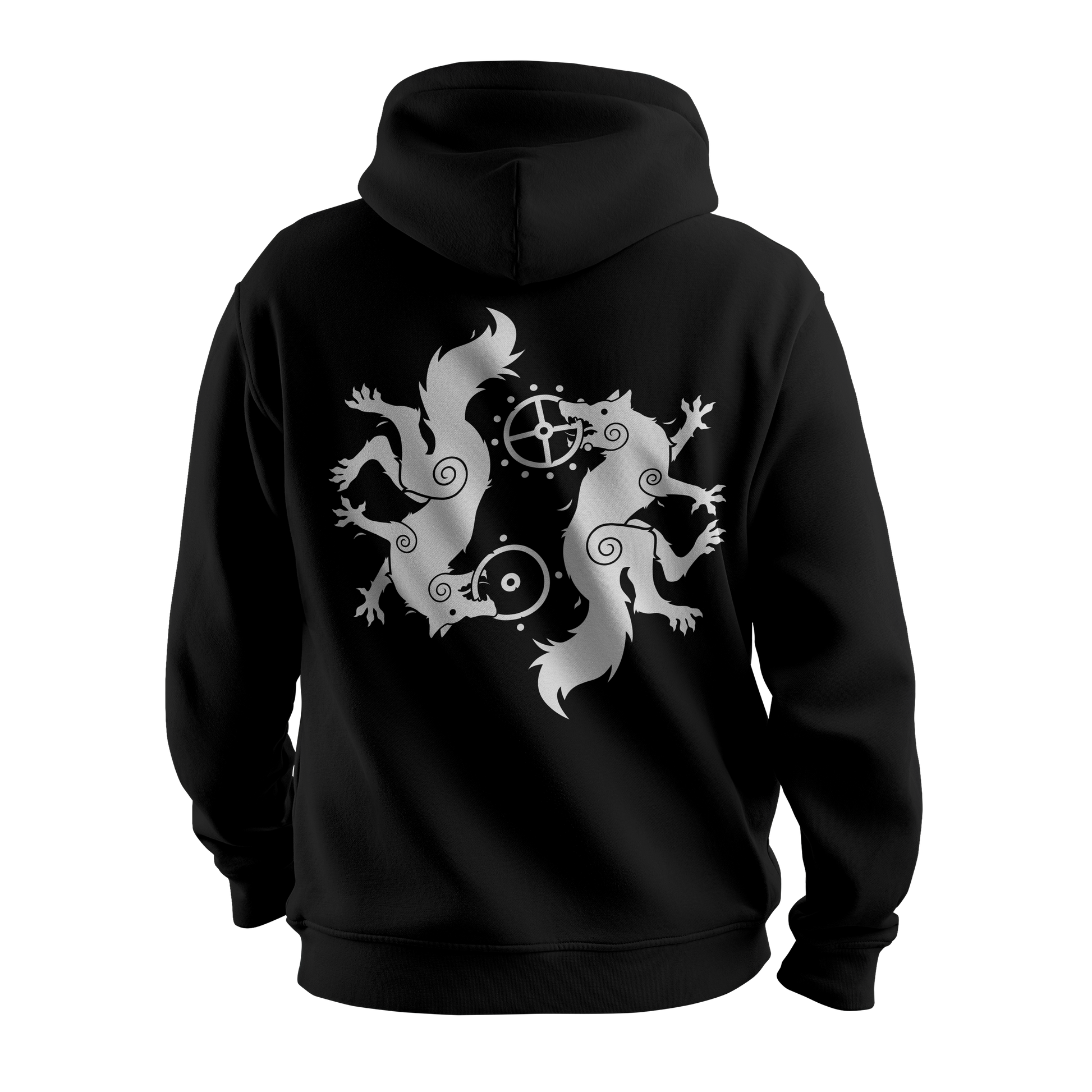 Embrace the spirit of Norse mythology with the Skoll & Hati Hoodie by Midgard Dweller, a garment that brings to life the fierce wolves of legend. In Norse mythology, Skoll and Hati are two giant wolves who relentlessly chase the sun and moon across the sky, bringing both a sense of awe and fear. Skoll, the wolf who chases the sun, and Hati, who chases the moon, are symbols of destiny and the eternal cycle of time. Their pursuit represents the balance between light and darkness, day and night, and their eventual catching of their prey is foretold to bring about Ragnarok—the end of the world and the rebirth of a new era.