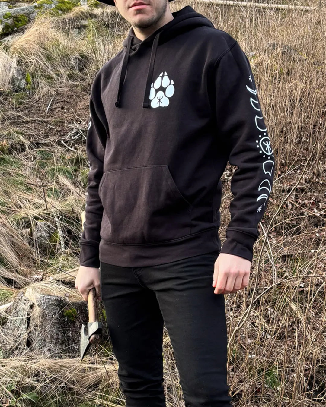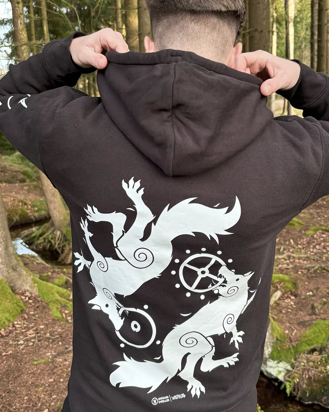 This hoodie is not just a garment, but a tribute to these legendary figures. Crafted with precision and care, it features a hand-pressed design - by Midgard Dweller - that captures the essence of these mythical beasts, embodying their strength, power, and undying perseverance. The intricate artwork symbolises the struggle between light and dark, echoing the ancient forces that shaped the Norse cosmos.