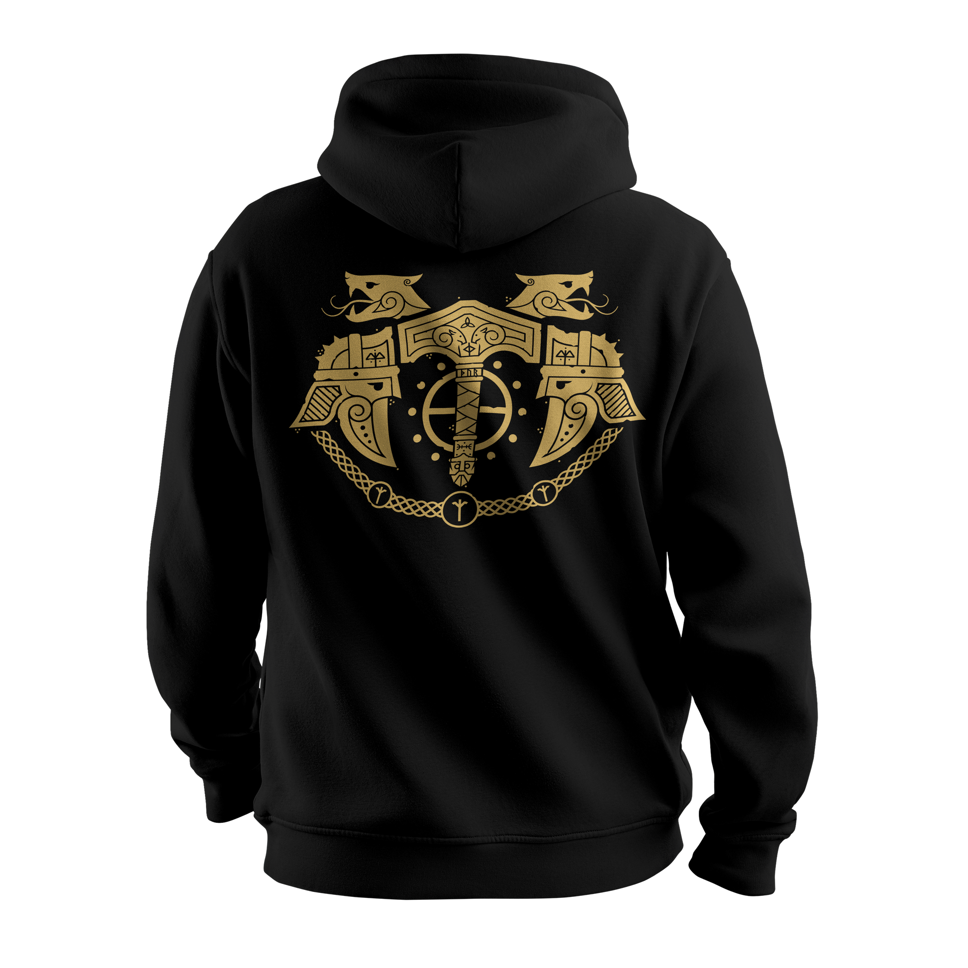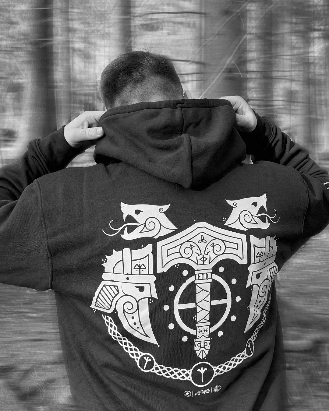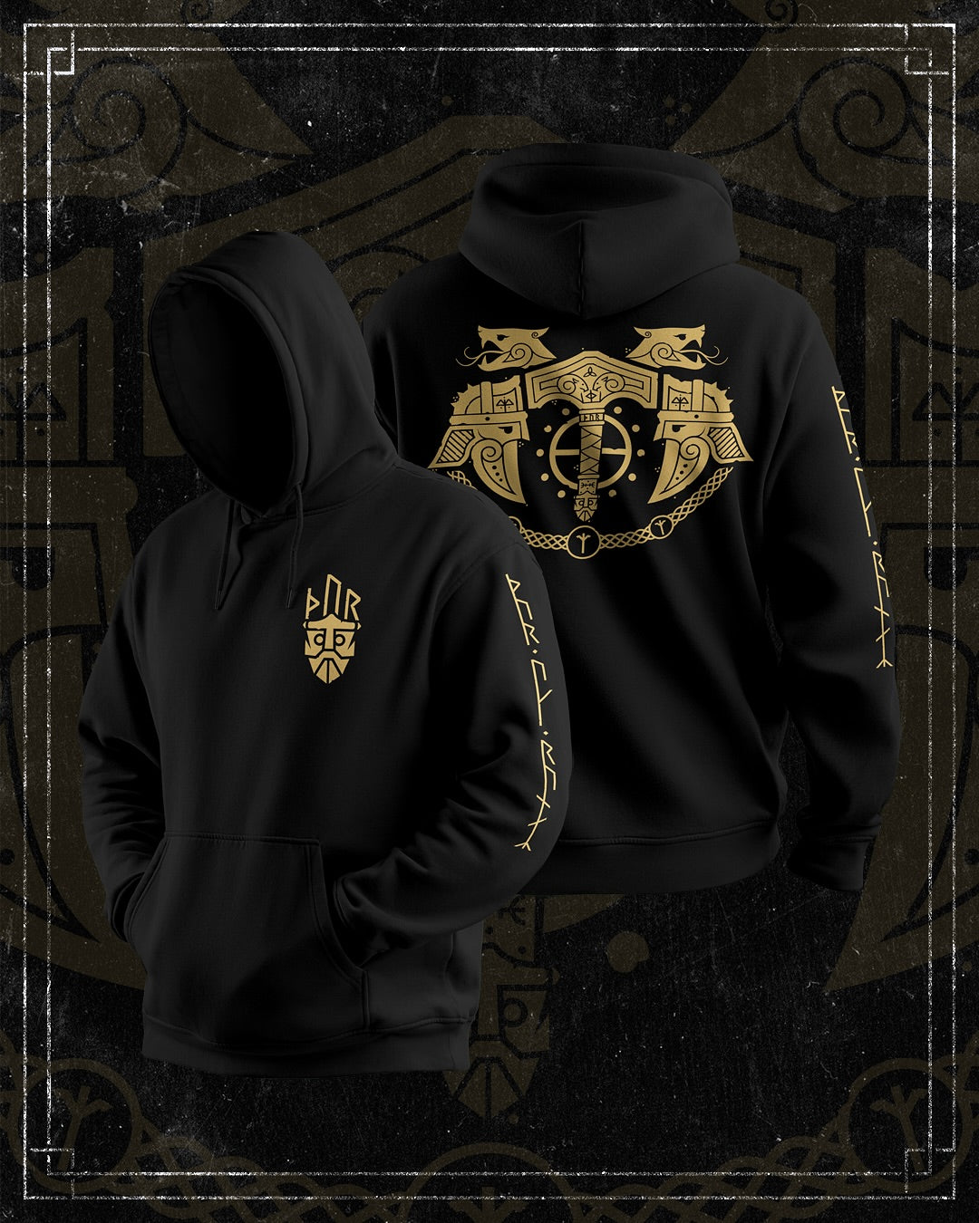 In Norse mythology, Thor’s goats, Tanngrisnir and Tanngnjóstr, were his loyal companions, pulling his chariot across the skies. These divine creatures were as much a part of Thor’s might as his hammer, embodying the connection between nature and the gods. The hoodie pays homage to these mystical goats, reminding you of their importance in Thor’s world and their role in his journeys across the nine realms.