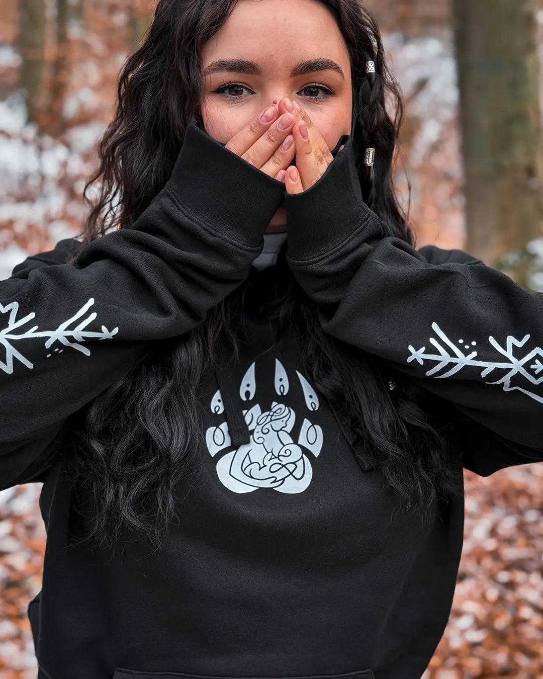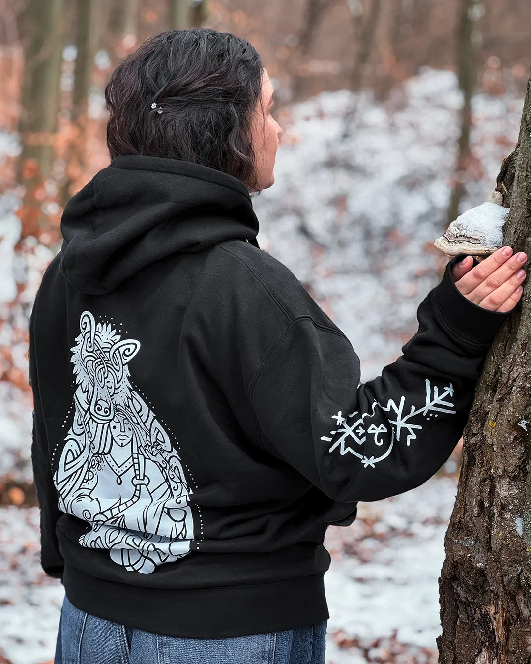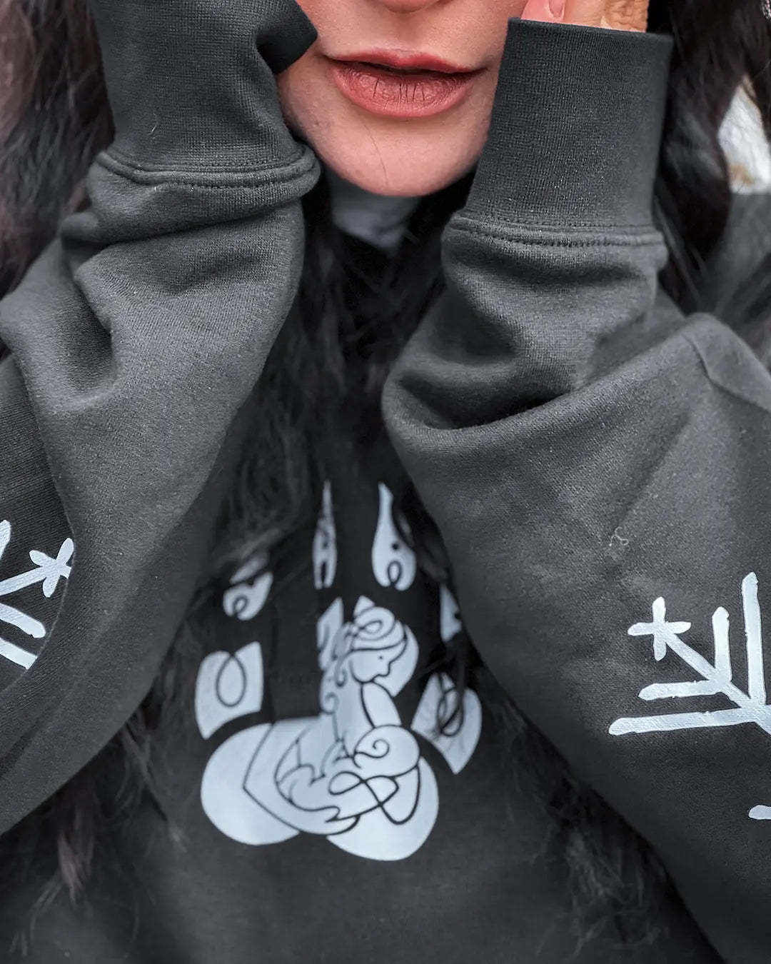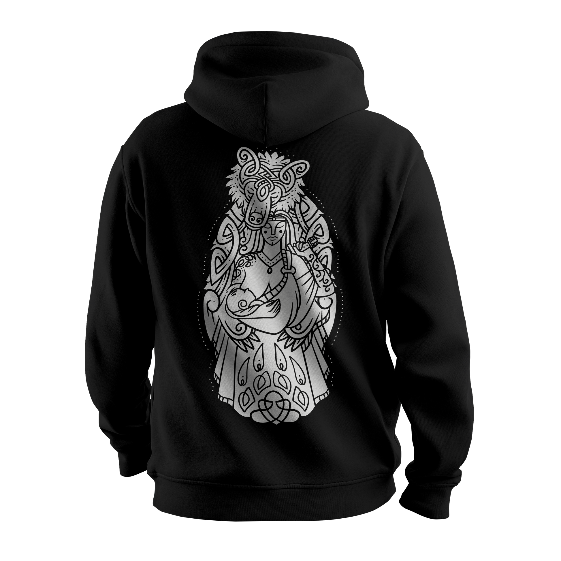 Introducing Motherhood, the standout piece from the exclusive Wolf Blood Collection. Designed in collaboration with a renowned Ukranian artist, this stunning piece embodies the raw beauty of maternal love and protection through a striking Norse-inspired design.