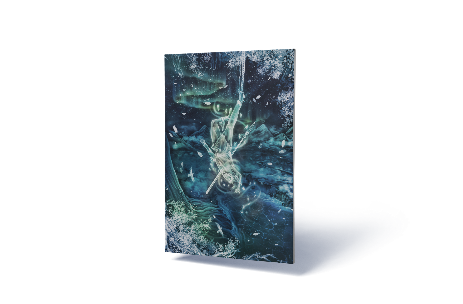 A4 print depicting Odin's ultimate act of sacrifice - hanging himself from the cosmic tree Yggdrasil for nine days and nine nights, wounded by his own spear Gungnir, to gain knowledge of the runes.